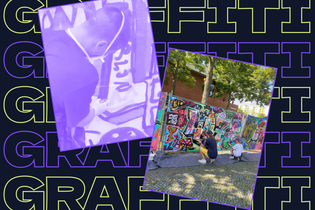 Tauche ein in die bunte Welt des Graffiti!. In unserem Workshop für Jugendliche hatten die Teilnehmer:innen die Möglichkeit, ihre Kreativität auszuleben und beeindruckende Graffiti-Kunstwerke in ganz Neukölln zu gestalten. Gemeinsam mit einem erfahrenen Künstler entdeckte die Gruppe spannende Techniken und Stile und setzte eigene Ideen an den Wänden um. Der Workshop bot nicht nur Raum für künstlerischen Ausdruck, sondern auch eine Plattform für Austausch und Zusammenarbeit mit Gleichgesinnten.